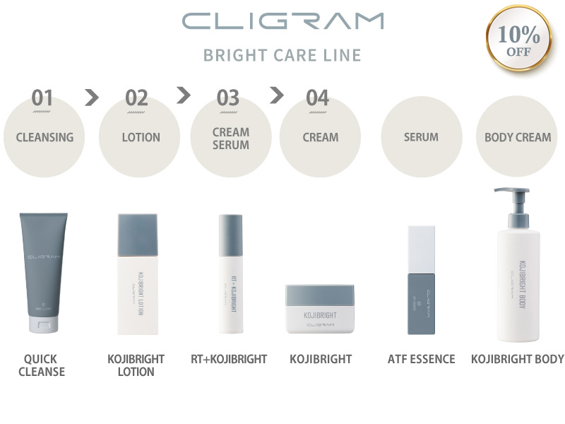“Stabilized Kojic-acid Derivatives” that is highly contained in Koji Bright skin care products has less risks of getting allergic reaction, and it could approach hyperpigmented skin conditions in a safer way compared to hydroquinone. It could be used for those who have sensitive skin as well.